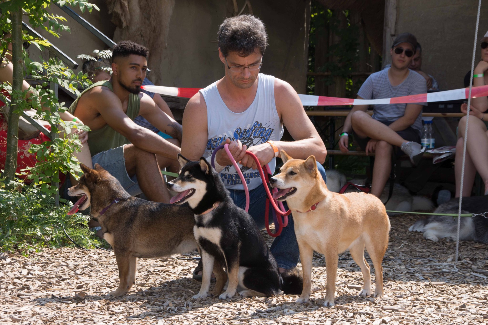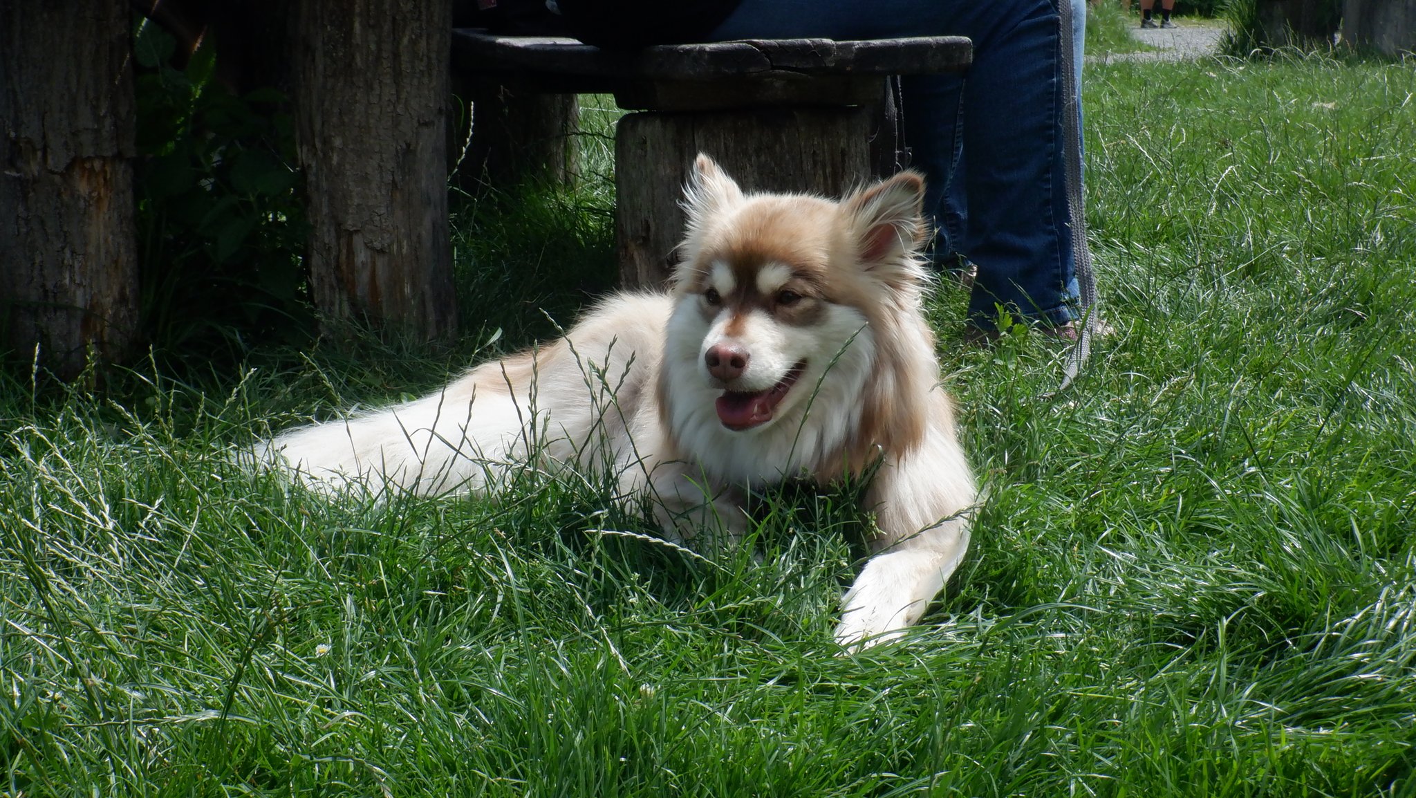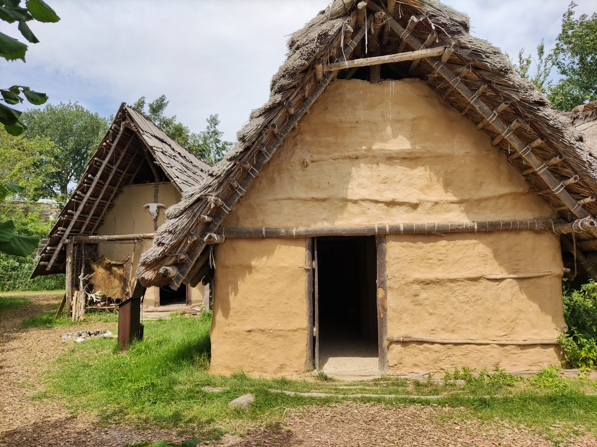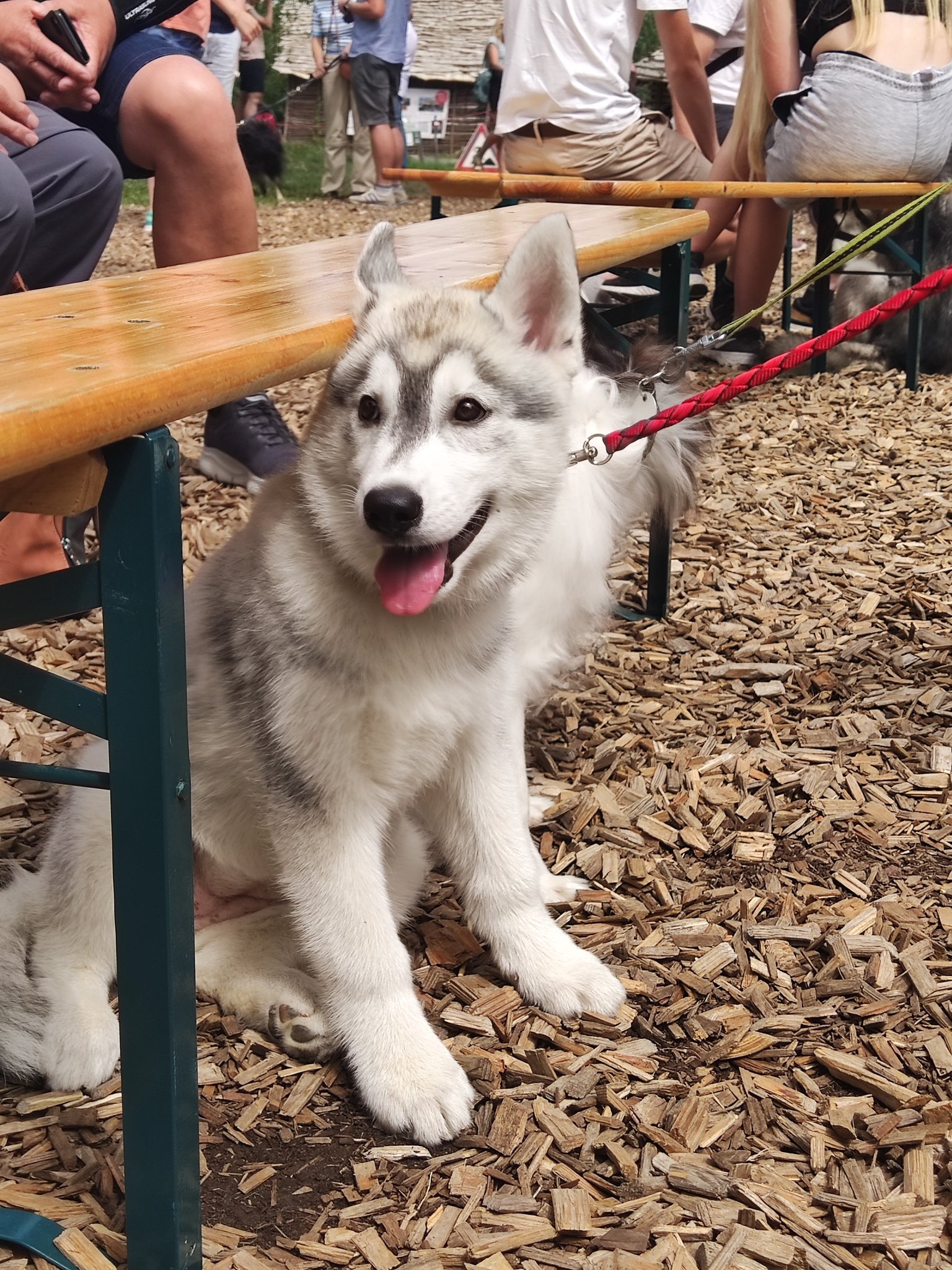 Da sich unsere Nordischen am besten für solche Zwecke eignen, hatten wir das Vergnügen an einem schattigen Platz, inmitten von nach gebauten, steinzeitlichen Häusern, unseren Infostand auf zubauen und unsere nordischen Hunde zu präsentieren.