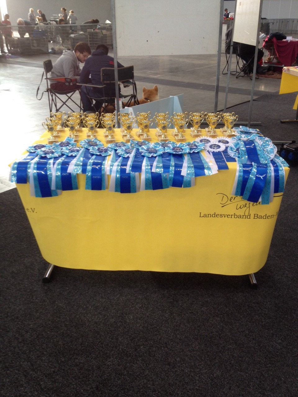 Im Rahmen der neu Gründung des Landesverbandes Süd (ehemals die LV’s Baden-Württemberg und Bayern), haben wir uns auch um den Infostand gekümmert. Der alte LV Baden-Württemberg Infostand wurde mit neuen Bildern bestückt. An dieser Stelle möchte ich mich bei Rebecca Schütte bedanken. Sie hat uns Bilder aus dem DCNH Archiv für diese Aufgabe zukommen lassen. Somit konnten wir die Bilder aller Rassen komplett erneuern und unsere Stand optisch in eine modernes Licht stellen. Simone war auf der Ausstellung am Samstag in Karlsruhe Sonderleiterin und hat die erfolgreichen Aussteller mit Pokalen beglückwünscht.